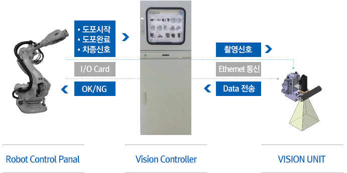 본 시스템은 BPR Sealer 도포 완료후 Camera, Illumination, PC를 이용하여 Sealer의 작업 이미지를 취득하고 전용 프로그램을 이용하여 Sealer의 폭, 넓이, 도포 유/무 불량도포를 판정하는 품질검사 시스템입니다.